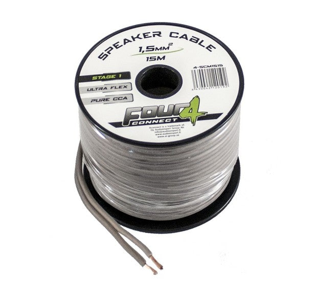 4Connect 4-SCM miniruller er en rimelig løsning på behovet for en høyttalerkabel. Rullene finnes i to forskjellige lengder, 15 og 30 meter. Kabelstørrelser 0,75, 1,5, 2,5 og 4,0 mm2. Den fintrådede OFCA-kabelen har en fleksibel silikonbasert gummiisolasjon som forblir fleksibel selv i minusgrader.