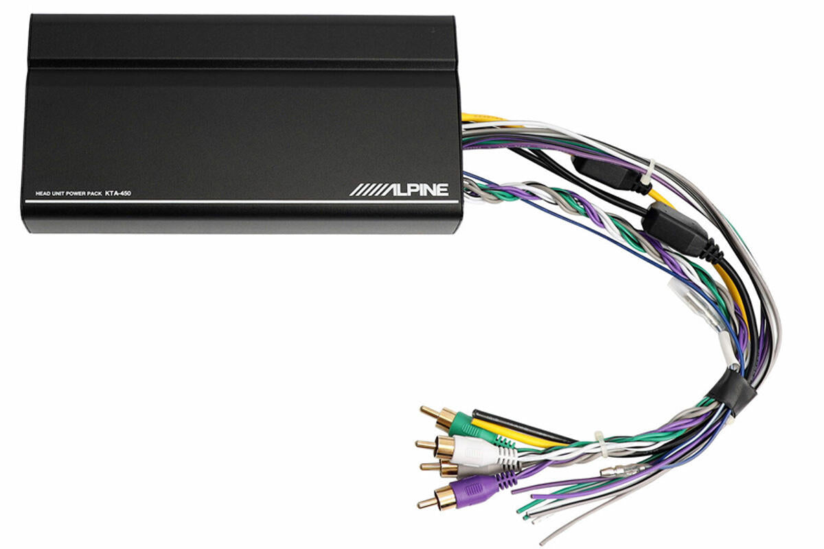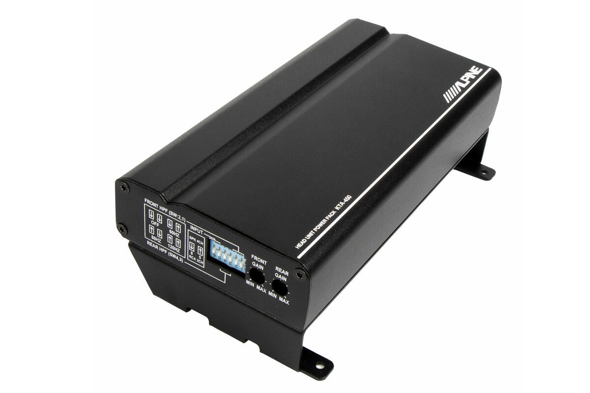 KTA-450 er en SVÆRT kompakt effekt forsterker som er designet for å monters på Alpine iLX-W690D hovedenhet for å gi radioen en kraftigere effektforsterker. Forsterkeren har fått Alpine sin DPP teknologi (Dynamic Peak Power) og kan produsere så mye som 100Watt pr kanal fra sitt kompakte hus.