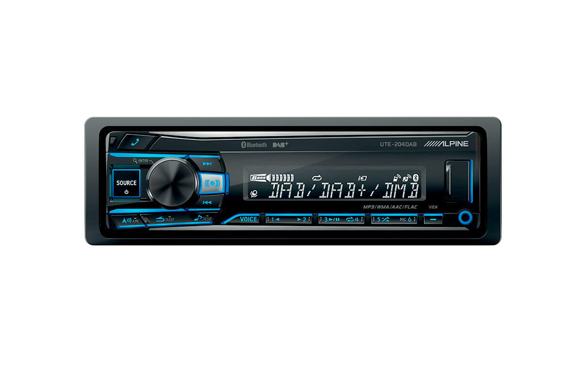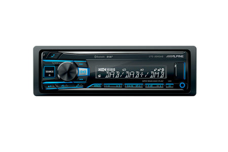 UTE-204DAB er en 1-DIN hovedenhet med DAB+, USB, AUX og Blåtann med Alpine kvalitets lyd.