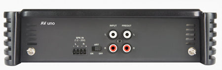 AV uno er en forsterker med en innovativ krets som kalles POD (Power On Demand). Den gir i sluttrinnet i AB-klassen en dynamisk kraft som tjener som grunnlag for signalet som skal forsterkes, for å øke effektiviteten og redusere temperaturen. AV uno gjør det mulig å kombinere det positive som lydkvalitet og robusthet fra de tradisjonelle forsterkerne fra AB Class forsterkere med effektiviteten til D Class-forsterkerne. AMP (forsterkerstyringsprosessor) kontrollerer kontinuerlig driftsstatussystemet og kommuniserer med brukeren gjennom 4 forskjellige fargede lysdioder, plassert på topppanelet; ART (automatisk på/av) lar forsterkeren automatisk slå seg på / av når et signal ikke er tilgjengelig fra kilden. AV uno er en monoforsterker designet for bruk med subwoofer, men også egnet for høy effekt Dual Mono-systemer.