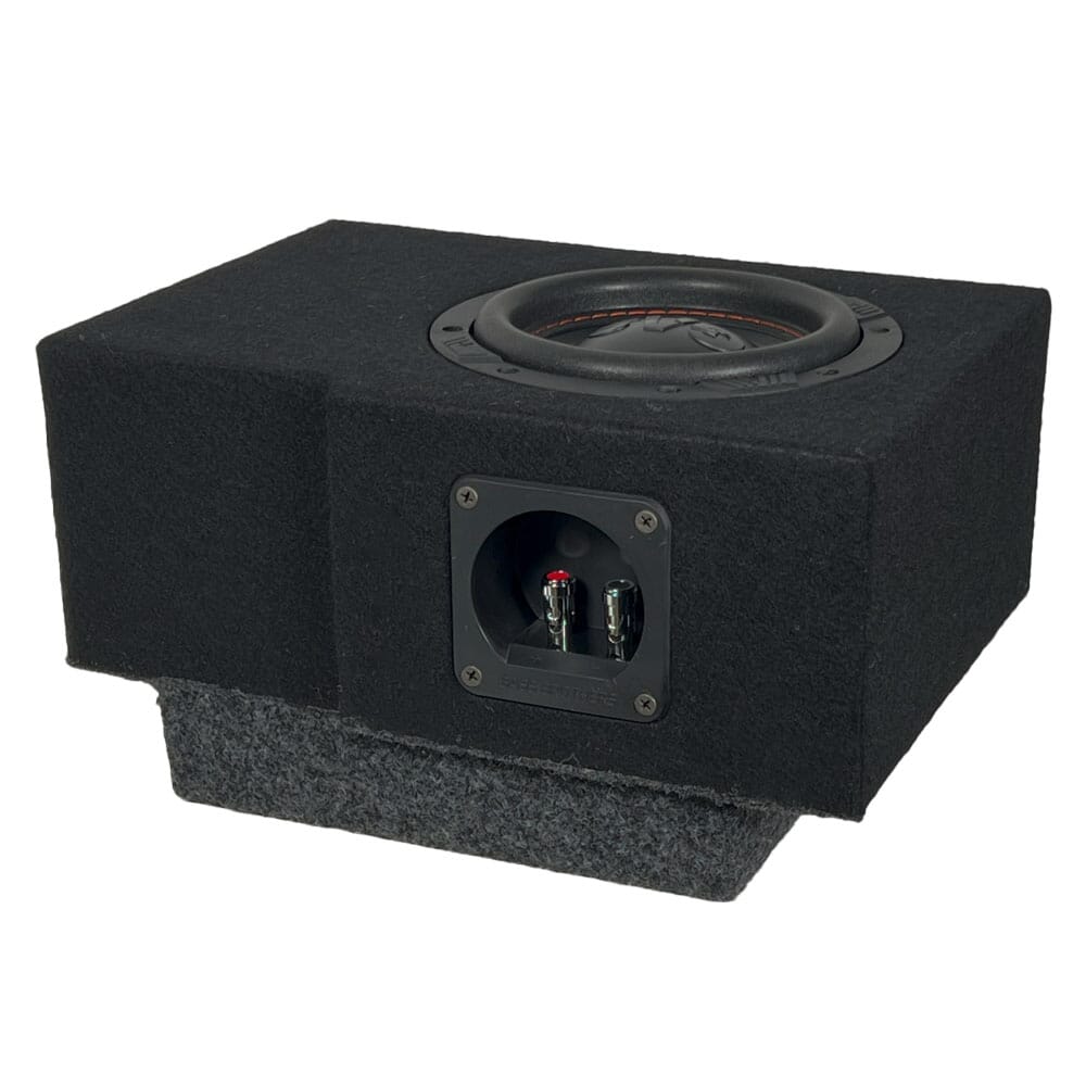 Noe interessant er det at man etter mange test-løsninger i ID.Buzz med Harman Kardon kommer tilbake til den allerede utviklede ID.Buzz basskassen vår som beste løsning. Her benytter vi i stor grad eksakt samme kassekonstruksjon som til ID.Buzz uten Harman Kardon, bare med noe lavere monteringsdybde. På den måten kommer ikke ny basskasse i konflikt med original Harman Kardon forsterker under passasjerstolen. Med biltilpasset basskasse utrustet med bestselgeren GAS MAX S1 6,5" og parret mot kompakt og sprek DLS Slim PS 1.500 bassforsterker, får man her et produktoppsett som gir deg bassfundament langt utover det man normalt kan forvente av så kompakt bassløsning. Fet, fyldig, rund og varm bass med høy effektivitet og musikalitet.