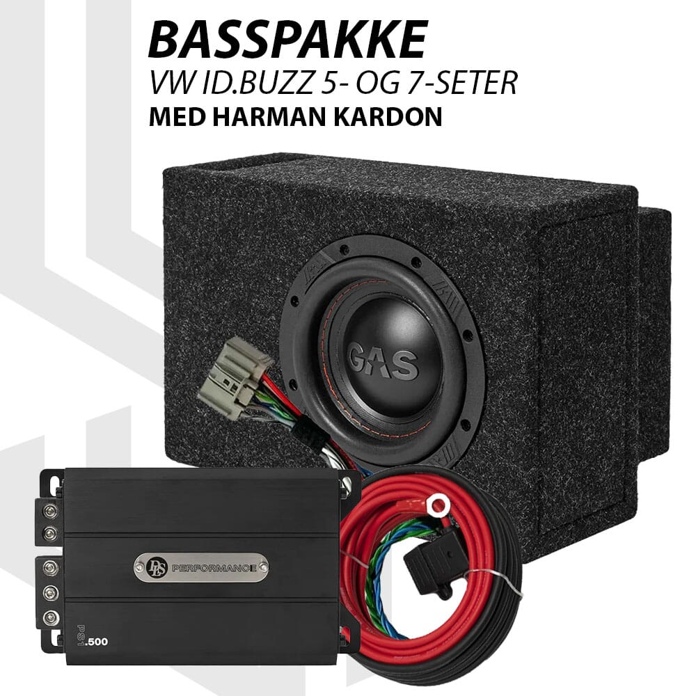 Med etterspørsel fra både bilforhandlere og privatkunder har vi derfor valgt å lage en bassoppgradering. Original Harman Kardon stereo har mye positivt ved seg, men har godt av litt ekstra drahjelp i bunnen av frekvensregisteret for å skape den pondusen de fleste ønsker og forventer fra et bra stereo. Med vår basspakke spesielt laget for ID.Buzz med Harman Kardon får man en basspakke som rimelig enkelt monteres skjult i bilen, samspiller bra med bilens øvrige originalstereo og utgjør et friskt pust i det totale lydbildet.