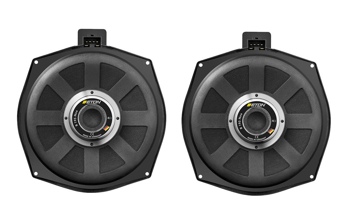 For å bøte på det som trolig er det største problemet med BMW, nemlig kvaliteten på lydsystemet, har Eton utviklet en serie utmerkede Plug and Play basshøyttalere for akkurat BMW. Eton B 195 NEO er en spesielt utviklet basshøyttaler som passer i original plassering under setet i en rekke BMW-modeller. Kjøretøyspesifikke tilkoblinger og utviklet og produsert i Tyskland.
