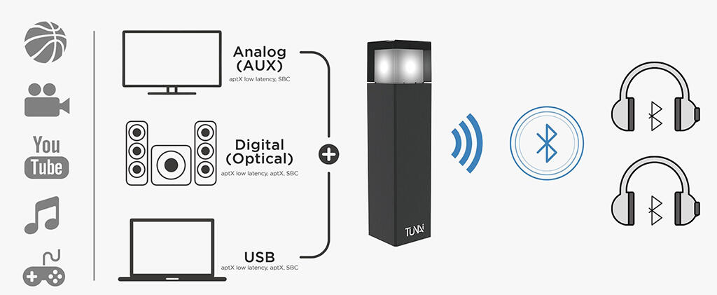 - Bluetooth-sender designet spesielt for TV, anlegg og PC