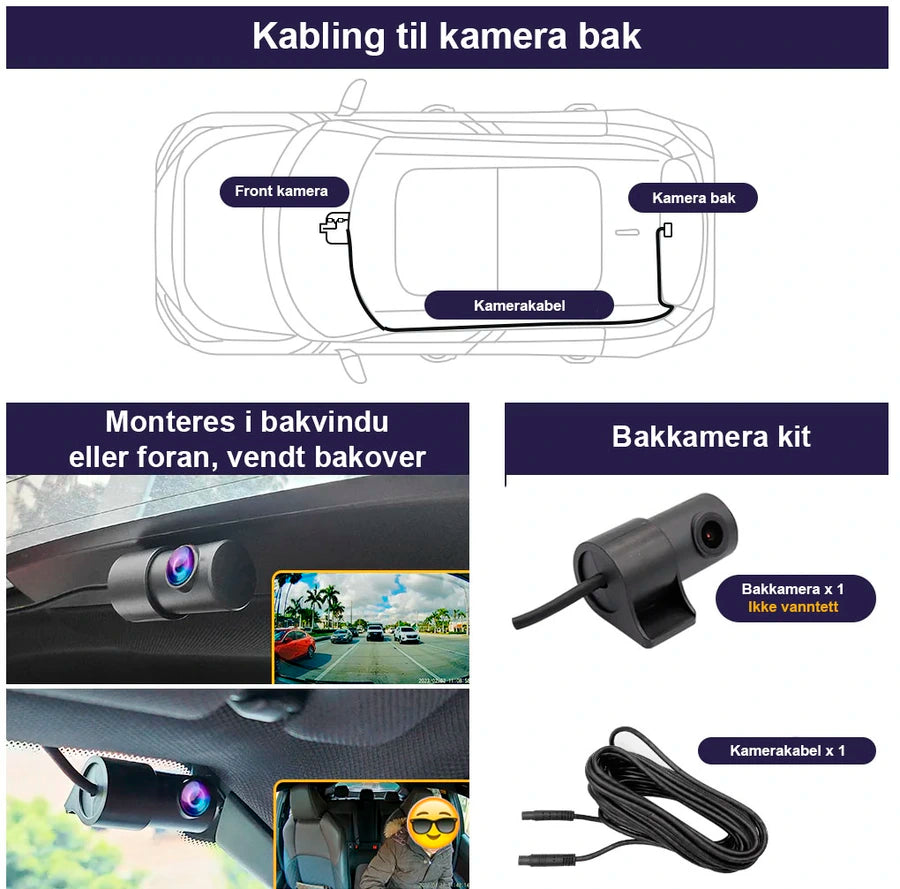 - Installasjon kamera bak: Kables via frontkamera.
