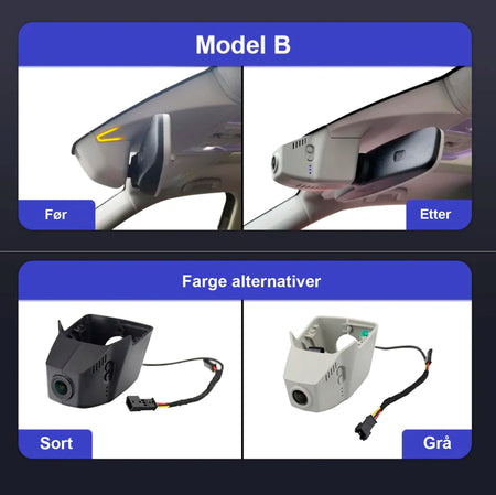 FITCAMX - integrert 4K dashcam foran og 1080P kamera bak til Volkswagen "Model B"