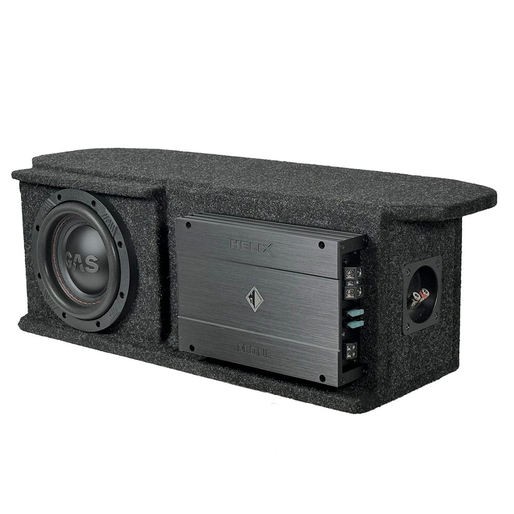 Denne pakken baserer seg på en basskasse som opptar svært liten plass i bagasjeromsbrønnen. Nærmere bestemt erstatter ny basskasse bilens originale Harman Kardon basskasse og fyller resterende rom i bagasjeromsbrønnen perfekt. Med sidevent og godt beskyttet basshøyttaler vil den alltid være godt beskyttt.