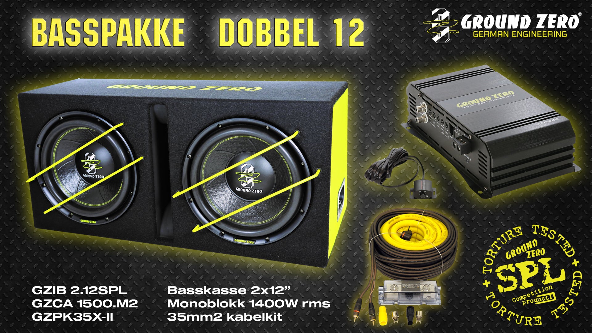 - Dette er en meget kraftig basspakke. Den digre basskassen har 2 sk av SPL monsteret GZIW 12XSPL boltet fast og dette drives av den splitter nye Competition forsterkeren GZCA1500.M2 som leverer solide 1400 ekte watt. Resultatet er voldsomt. Dette spiller veldig kraftfult bra de dypeset tonene opp til de harde slagene som du kjenner slår deg på kroppen. Bassene er designet med Klippel-optimalisering for å presse ut hver eneste desibel som er mulig å få. Svingspolekjølingen er svært effektiv og høy slaglengde gir deg MYE bass. Veldig lineær impedanskurve gjør det mulig å virkelig trekke ut all kraften fra forsterkeren til disse subwooferne.