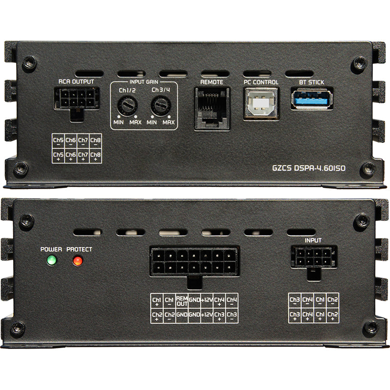 - 4 kanals forsterker med 8 kanals DSP og ISO kabelsett