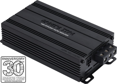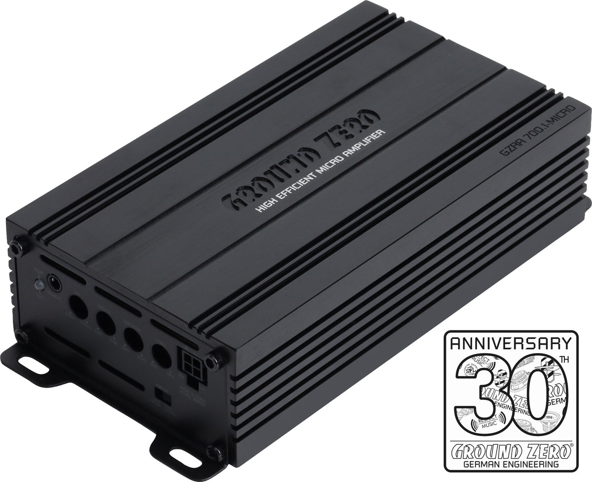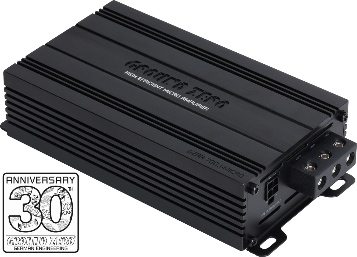 - Ground Zero GZRA 700.1-MICRO er en høyeffektiv ultrakompakt og kraftig klasse D monoblokk. Den har avansert høynivåinngang med "dummy" belastningsmotstander for å omgå høyttalerdiagnostikk så her trenger du ikke være redd for feilmeldinger fra bilens elektronikk.