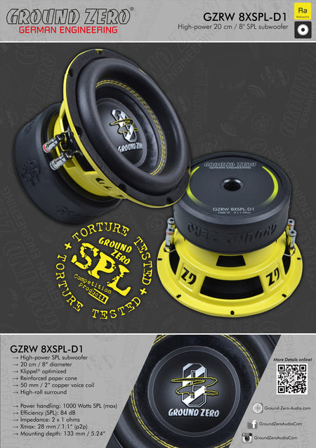 Ground Zero GZRW 8XSPL-D1 400 til 1000W RMS - NY!