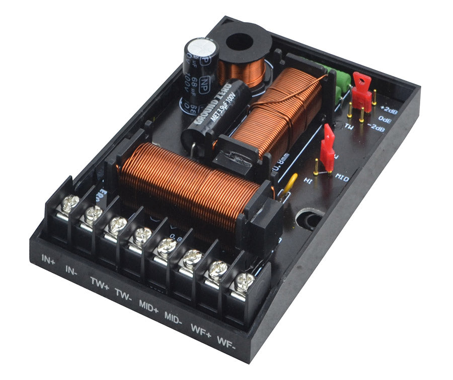 - 3-way passive crossover with level adjustment