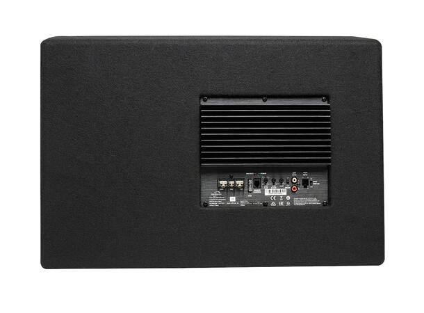 Innebygget 150 watts RMS klasse D forsterker og en 12" (300 mm) Subwoofer.