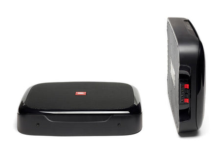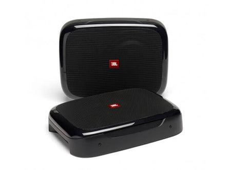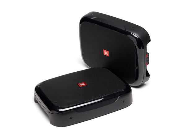 Denne subwooferen fra JBL består av 2 stk 8" subwoofere i hvert sitt kabinett som enten kan monteres sammenslått stående som en enhet som avbildet, eller deles opp og monteres separat liggende.
