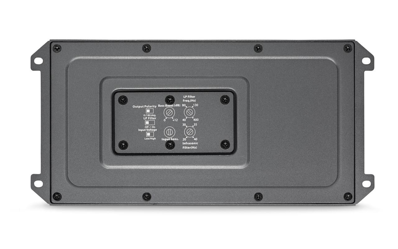 Forsterkeren generer solide 500Watt ved 4ohm (14,4V, 1%THD). Bruk den til å drive en eller to subwoofere for å levere kraftfull bass. MX500/1 har også justerbart lav-pass filter, bass boost EQ, variabelt infrasonic filter og en polaritetsbryter for utgangstrinnet.