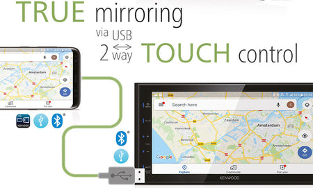 Med Kenwoods nye designlinje, like pent som det er intuitivt. Den store 6,8" touchscreen-skjermen og det nye grafiske brukergrensesnittet kan kun beskrives som eksepsjonelt brukervennlig. Elegant flat front uten knapper, kun touch.