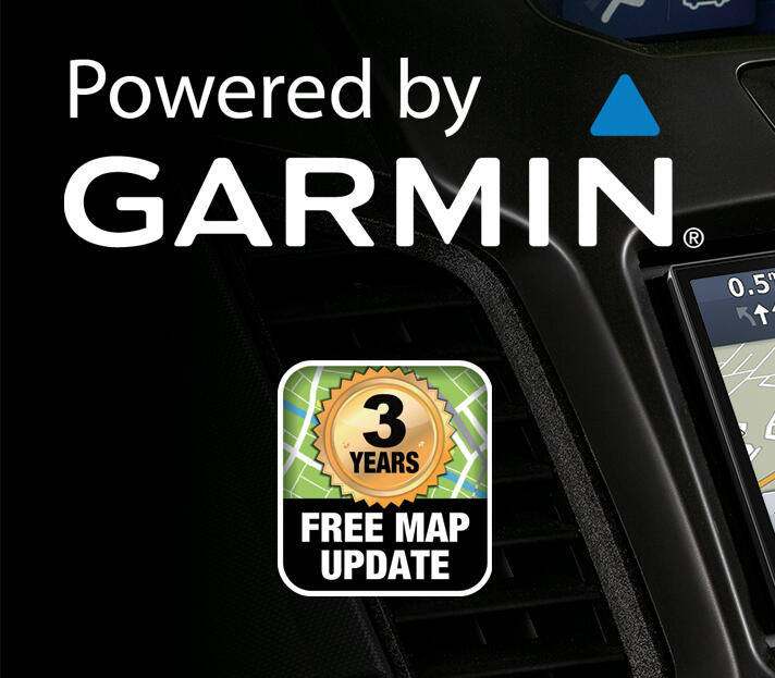 - Innebygd Garmin navigasjonssystem med komplett europeiske kartdata