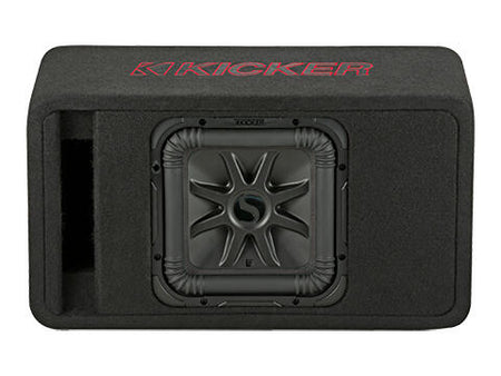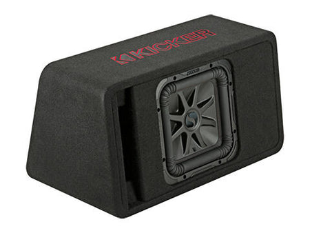 KICKERs firkantede subwoofer-teknologi har patenterte, ribbede hjørner, UniPlate™ solid polstykke og bakplate, og det sprøytestøpte SoloKon™-membransystemet. Du får opptil 20 % mer volum sammenlignet med et rundt element, slik at du flytter mer luft og får mer bass! Kombinert med en optimalisert port, forsterket MDF-konstruksjon, avrundede hjørner og tykt svart teppe, får du stor bass uten å måtte betale for et spesialtilpasset kabinett.