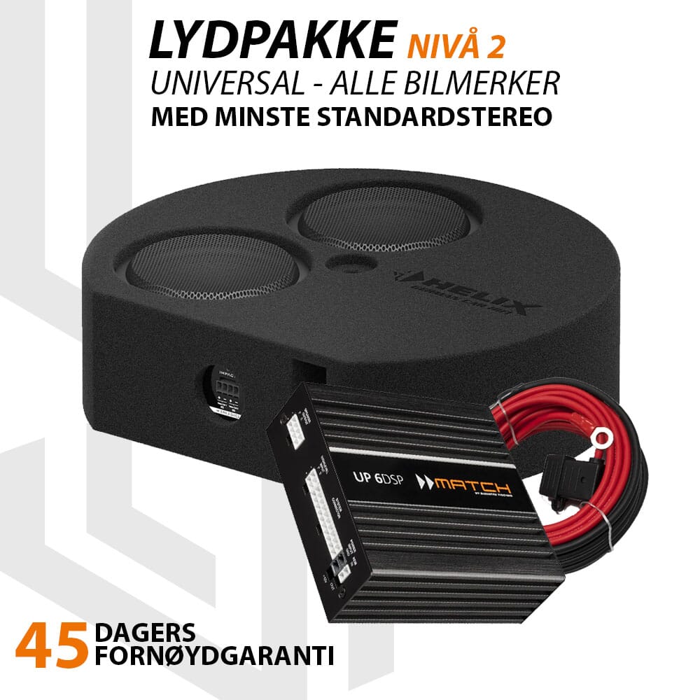 Forsterkeren benyttet i denne pakken kombinert med vår forhåndsjustering av forsterkerens integrerte DSP utgjør den store magien i en slik oppgradering. Her har vi brukt mye tid på oppmåling og justering av en DSP-fil spesielt tilpasset denne bilen, basert på utstyret som er montert. Match sin prisvinnende programvare for DSP-justering (DSP PC-Tool) innehar en bred equalizer, avanserte delefilter, avansert tidskorrigering o.s.v. Til din store fordel som kunde, så gir vi deg alltid muligheten til å påvirke ditt eget lydresultat når det monteres Match DSP-forsterker. Vi anbefaler å starte med vår forhåndsjusterte DSP-fil som utgangspunkt. Lyd er likevel en individuell smakssak som igjen kan oppleves ulikt alt etter fortrukken musikksjanger eller avspillingsmetode. Dersom du skulle ha innvendinger mot lydresultatet i din bil etter montering og bruk, så anbefaler vi deg å ta kontakt. Basert på dine tilbakemeldinger kan vi justere videre på DSP-filen, før ny versjon sendes til deg med forklaring om hvordan du overfører denne til Match-forsterker via egen PC.