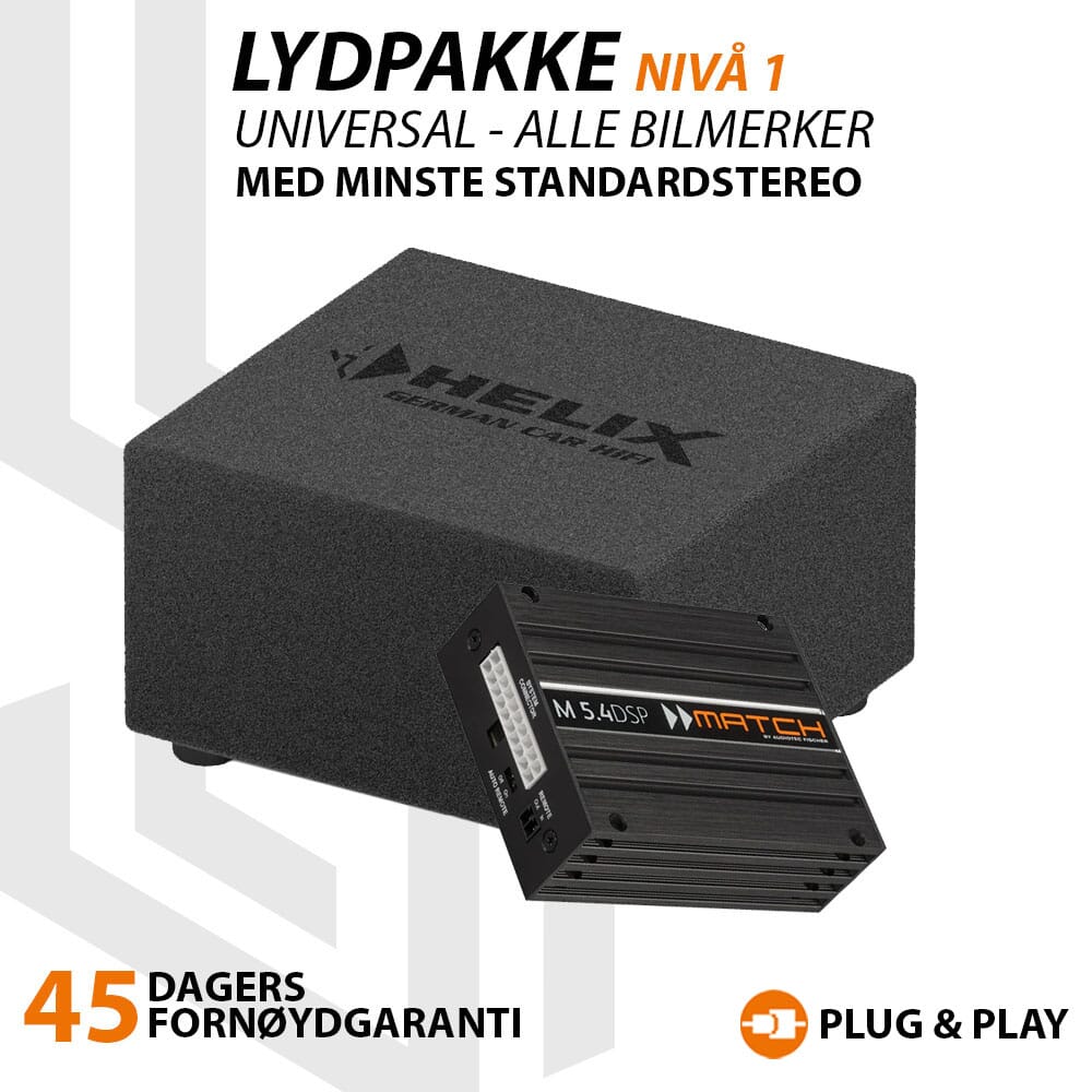 Forsterkeren benyttet i denne pakken kombinert med vår forhåndsjustering av forsterkerens integrerte DSP utgjør den store magien i en slik oppgradering. Her har vi brukt mye tid på oppmåling og justering av en DSP-fil spesielt tilpasset denne bilen, basert på utstyret som er montert. Match sin prisvinnende programvare for DSP-justering (DSP PC-Tool) innehar en bred equalizer, avanserte delefilter, avansert tidskorrigering o.s.v. Til din store fordel som kunde, så gir vi deg alltid muligheten til å påvirke ditt eget lydresultat når det monteres Match DSP-forsterker. Vi anbefaler å starte med vår forhåndsjusterte DSP-fil som utgangspunkt. Lyd er likevel en individuell smakssak som igjen kan oppleves ulikt alt etter fortrukken musikksjanger eller avspillingsmetode. Dersom du skulle ha innvendinger mot lydresultatet i din bil etter montering og bruk, så anbefaler vi deg å ta kontakt. Basert på dine tilbakemeldinger kan vi justere videre på DSP-filen, før ny versjon sendes til deg med forklaring om hvordan du overfører denne til Match-forsterker via egen PC.