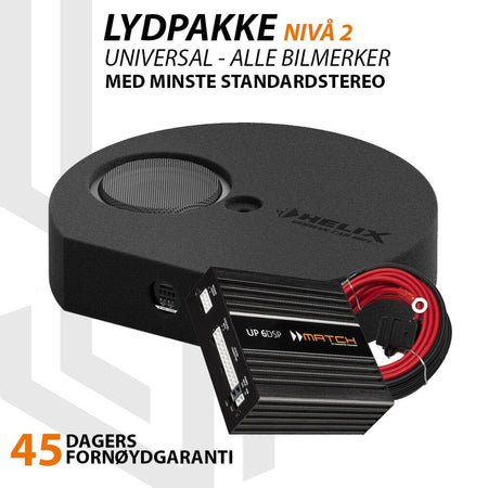 Denne pakken inkluderer HELIX IK ER8.1-DVC2 som må sies å være av de bedre basskassene som Match-forsterkeren kan parres mot. En 8" basshøyttaler i romslig basskasse ment for plassering i hjulbrønner med begrenset høyde. Hurtigkobling på basskassen gjør det enkelt å sette fra seg basskassen de gangene du behøver all bagasjeromsplass.