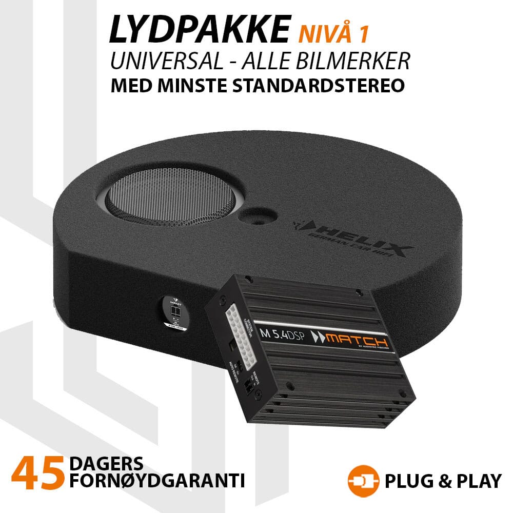 Forsterkeren benyttet i denne pakken kombinert med vår forhåndsjustering av forsterkerens integrerte DSP utgjør den store magien i en slik oppgradering. Her har vi brukt mye tid på oppmåling og justering av en DSP-fil spesielt tilpasset denne bilen, basert på utstyret som er montert. Match sin prisvinnende programvare for DSP-justering (DSP PC-Tool) innehar en bred equalizer, avanserte delefilter, avansert tidskorrigering o.s.v. Til din store fordel som kunde, så gir vi deg alltid muligheten til å påvirke ditt eget lydresultat når det monteres Match DSP-forsterker. Vi anbefaler å starte med vår forhåndsjusterte DSP-fil som utgangspunkt. Lyd er likevel en individuell smakssak som igjen kan oppleves ulikt alt etter fortrukken musikksjanger eller avspillingsmetode. Dersom du skulle ha innvendinger mot lydresultatet i din bil etter montering og bruk, så anbefaler vi deg å ta kontakt. Basert på dine tilbakemeldinger kan vi justere videre på DSP-filen, før ny versjon sendes til deg med forklaring om hvordan du overfører denne til Match-forsterker via egen PC.