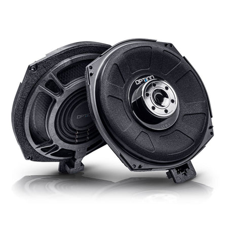 Option BM-200 subwoofere er designet for å monteres på bilens originale plassering under setene, og byr på høy kvalitet. De monteres enkelt i alle BMW E-serie, F-serie og G-serie fra ca 2006 og oppover.