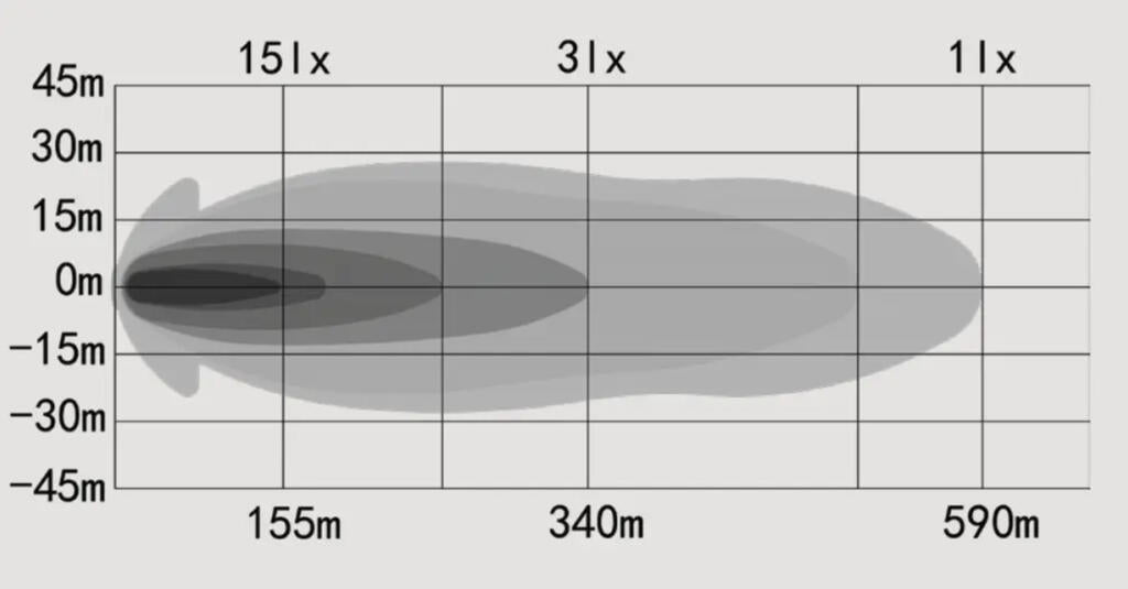 - Rekkevidden er 480 meter ved 1 lux på standardmodus, og hele 610 meter i Boost-modus.
