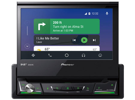AVH-Z7200DAB går fra 1-DIN til 7 tommer med full bilunderholdning på få sekunder. Når den store berøringsskjermen brettes ut, lar denne multimediespilleren deg koble til en kompatibel iPhone eller Android-telefon med en enkel USB-kabel, som lar deg kontrollere Apple CarPlay, Android Auto, WebLink og Waze (via Apple CarPlay eller Android Auto) fra dashbordet på en praktisk og sikker måte. Den spiller av DAB/DAB+ Digital Radio, lyd- og videoinnhold fra CD-er, DVD-er og USB-enheter.