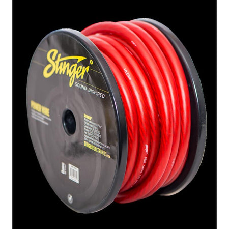 Stinger Høykvalitets strømkabel i fortinnet oksygenfritt kobber 0 Gauge (50 mm²) 4214 kordeler , rød kappe,