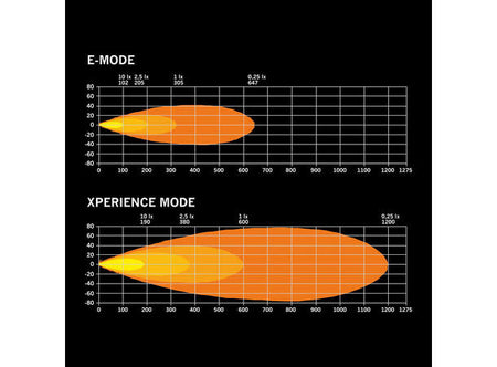 - 1 LUX @ m: 305m i E-mode og 600m i X-mode
