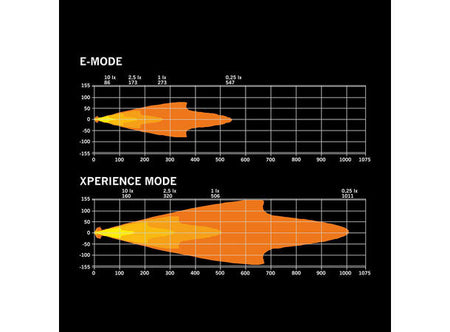 Med Xperience-modus får du en lysstyrke på 12.000 faktiske lumen og en rekkevidde på 506 meter. E-modusen er E-godkjent R148/149 med referansenummer 20. Dette kreves i mange europeiske land, men er også perfekt ved kjøring i dårlig vær.