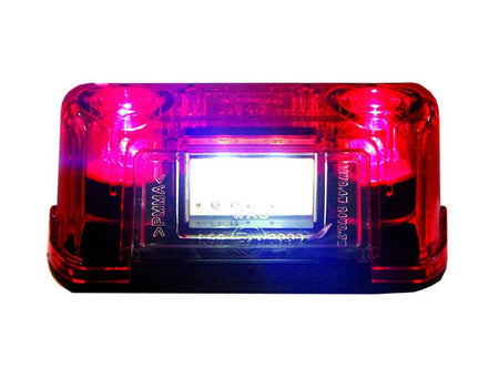 LED nummerskiltlys med slankt rektangulært design og rødt glass