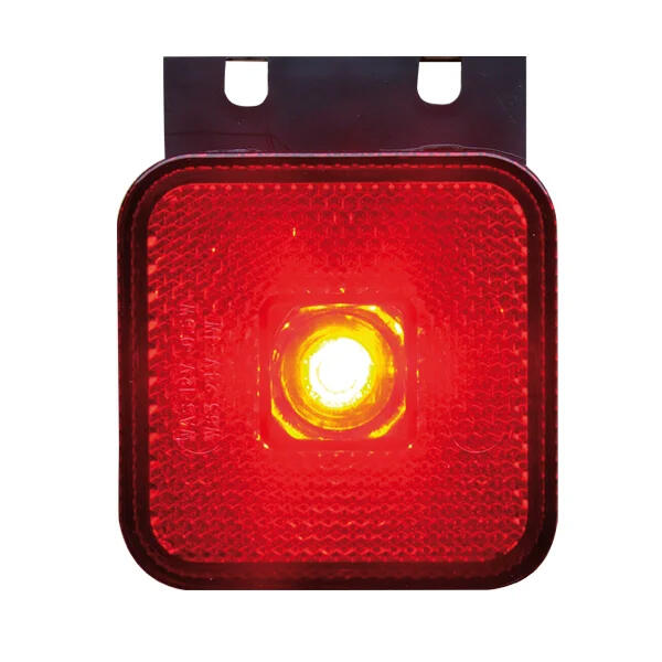 Kvadratisk posisjonslys LED, med rødt glass, 12-24V. E-godkjent