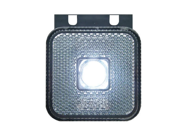 Kvadratisk posisjonslys LED, Hvitt med klart glass, 12-24V. E-godkjent