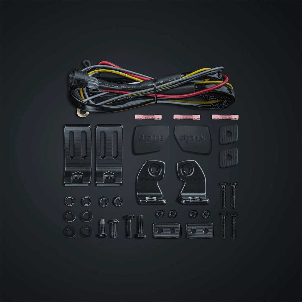Skylord har et innebygd relé og kobles til med en 2,5 m kabel, og leveres med installasjonstilbehør: side- og opphengsbeslag, skiver, bolter, gummipute, gummideksel med Strand-logoen, kabelsett for XBB med knapp for posisjonslys og SuperSeal-kontakt. Du kan trenge et CANbus-grensesnitt, f.eks. XBB, for å fullføre installasjonen.